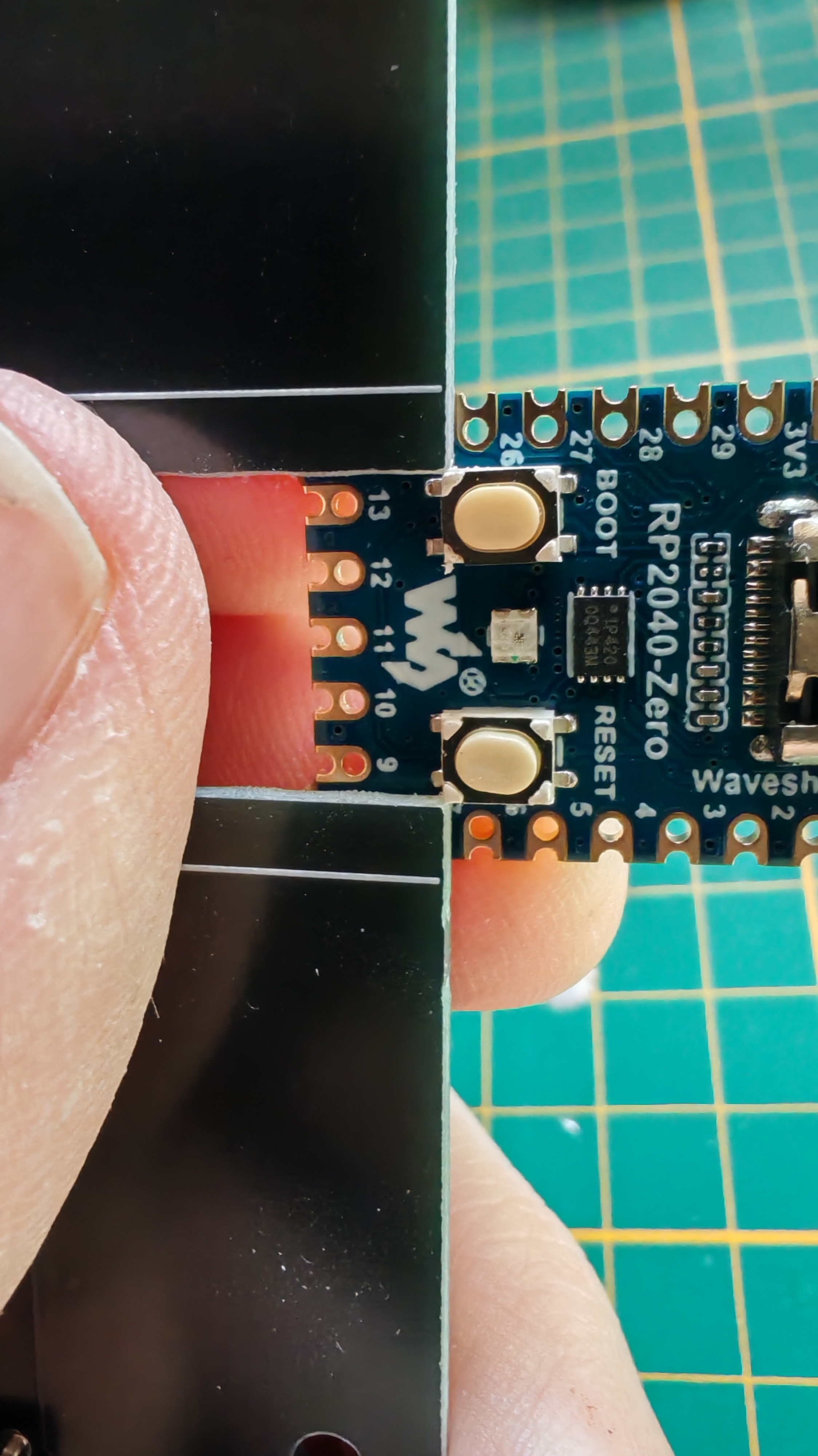 Jusque là c'est que des boutons. Peuvent rien faire sans avoir un microcontrôleur. Faisons entrer le RP2040-Zero dans le mix: